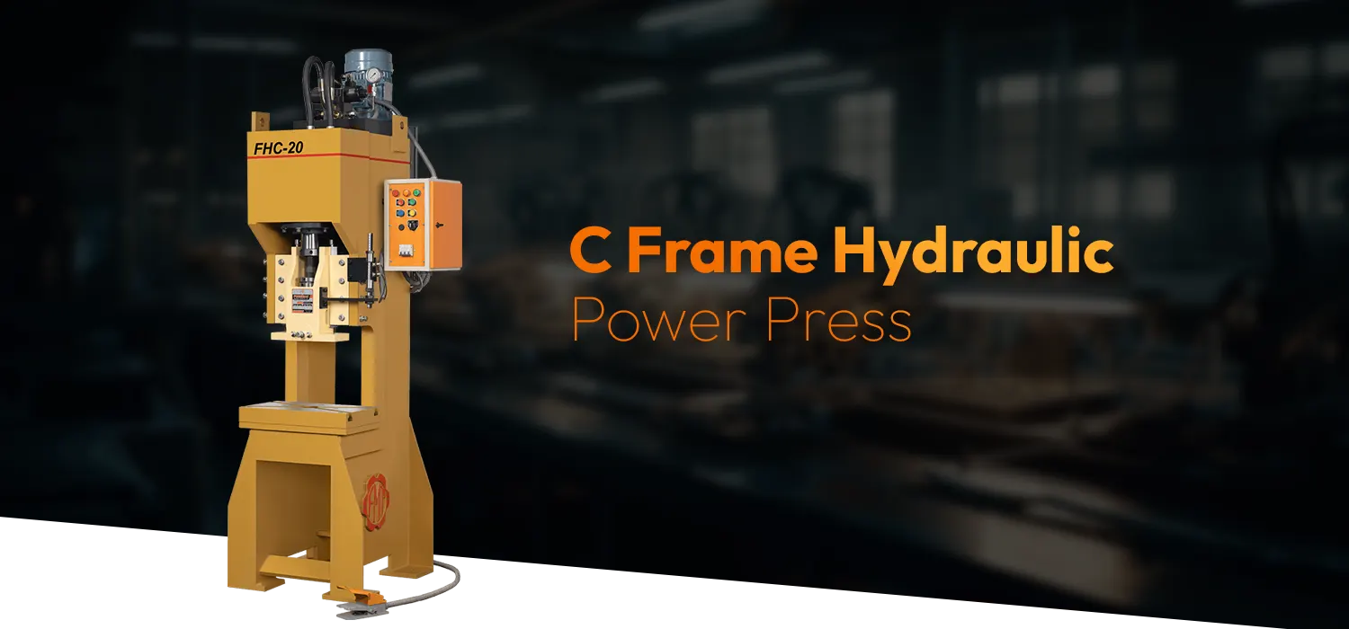 Unlike mechanical presses, hydraulic power presses use hydraulic cylinders and fluid pressure to generate force, offering smooth and precise operation with adjustable stroke length and pressure control. This makes them ideal for operations requiring consistent force throughout the stroke, such as deep drawing and forming of complex shapes. C Frame Hydraulic Presses are known for their structural rigidity and are typically built with thick steel plates to minimize deflection under load, ensuring high accuracy and repeatability. These presses are commonly used in industries like automotive, electrical, home appliances, and aerospace, where precision and customization are critical. Safety is also a major advantage, as modern hydraulic presses often include advanced features like pressure relief valves, safety interlocks, light curtains, and two-hand operation controls.